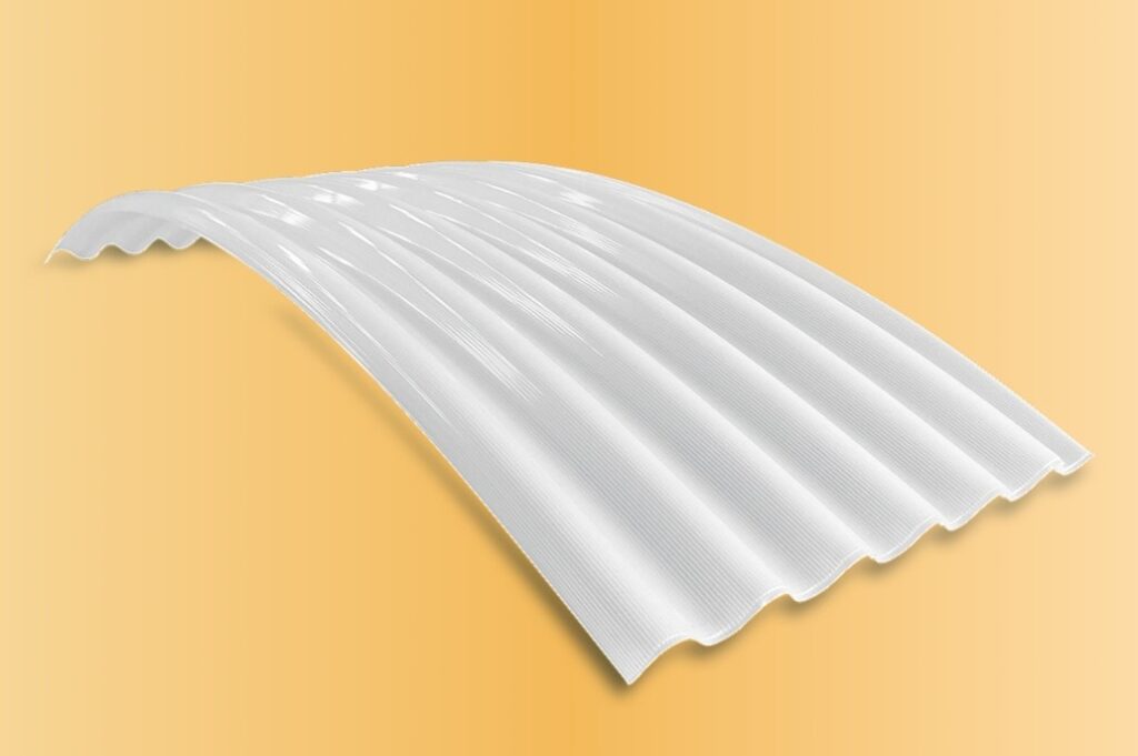 Además, su forma curvada y ondulada permite colocarla fácilmente sobre estructuras metálicas, favoreciendo el desagüe del agua de lluvia y facilitando la instalación. Por todo ello, se utiliza habitualmente como lucernario cenital en continuo.